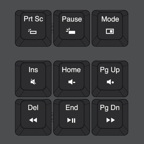 Furthermore, we've made the smart function layer even smarter. We decided to remove the mute mic key because it wasn't reliable enough and moved all the media keys into one cluster, while moving the backlit controls and special FN toggle key to the top right row of keys.