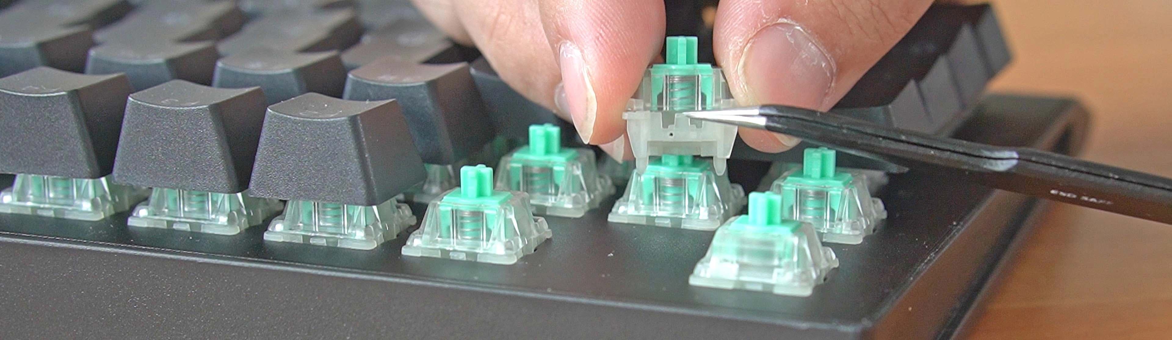 To clean in between the switches, you will need to grab your cotton sticks and create another lukewarm soapy bath. You dip your cotton sticks in the soap bath (make sure it isn’t dripping, but lightly moist) and rinse in between your switches. If you want to be more hygienic, you can use isopropyl alcohol instead of a soap bath. Sometimes, hairs may be stuck in the crevices of your switches. You can remove these by hand, but the easiest would be to use tweezers.