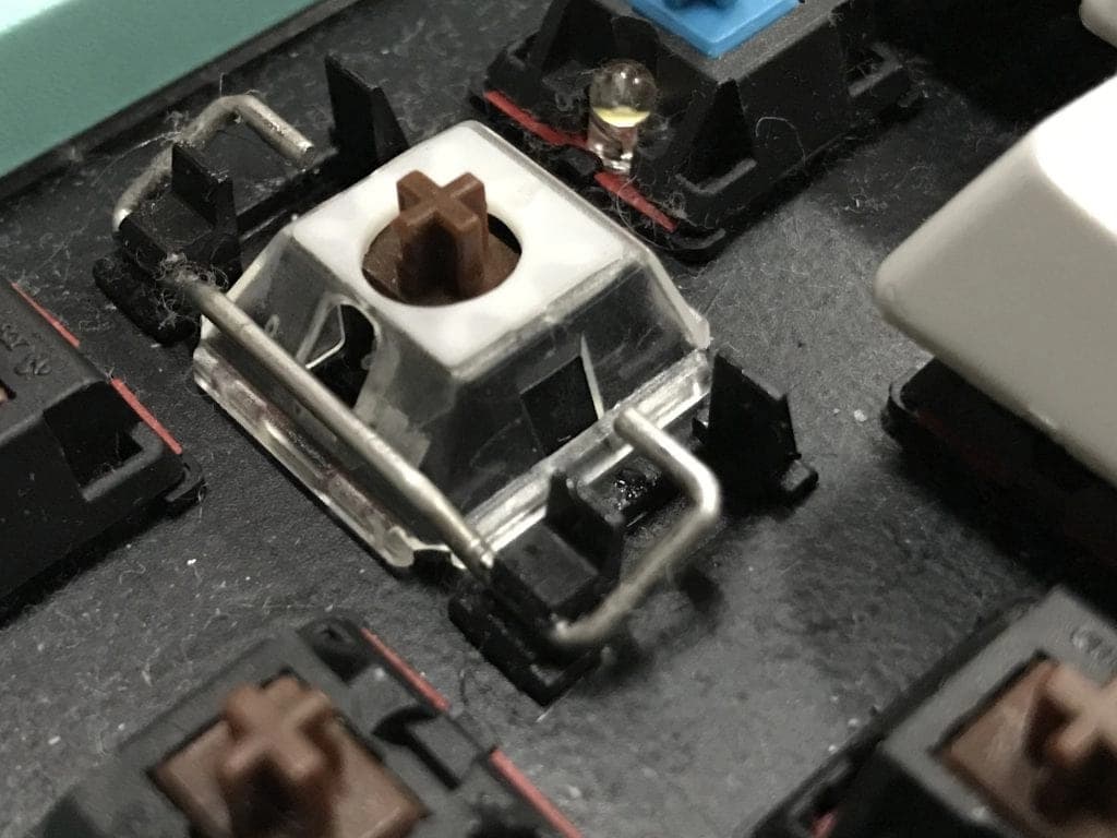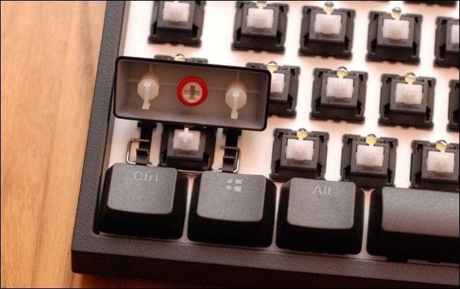 The band-aid clipping mod involves modifying the stabilizer keys. These are the additional faux switches on larger keys, such as the spacebar and right shift. The mod helps a lol to remove rattle from the metal bar that connects the stabilizers and dampens the sound produced from the stabilizer stem slamming against the PCB.