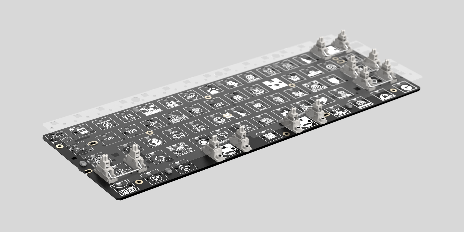 The 60HE v2 uses an FR4 switch plate. It remains stiff enough for stable key feel, but produces a deeper sound and avoids the sharper resonance commonly associated with metal plates.
