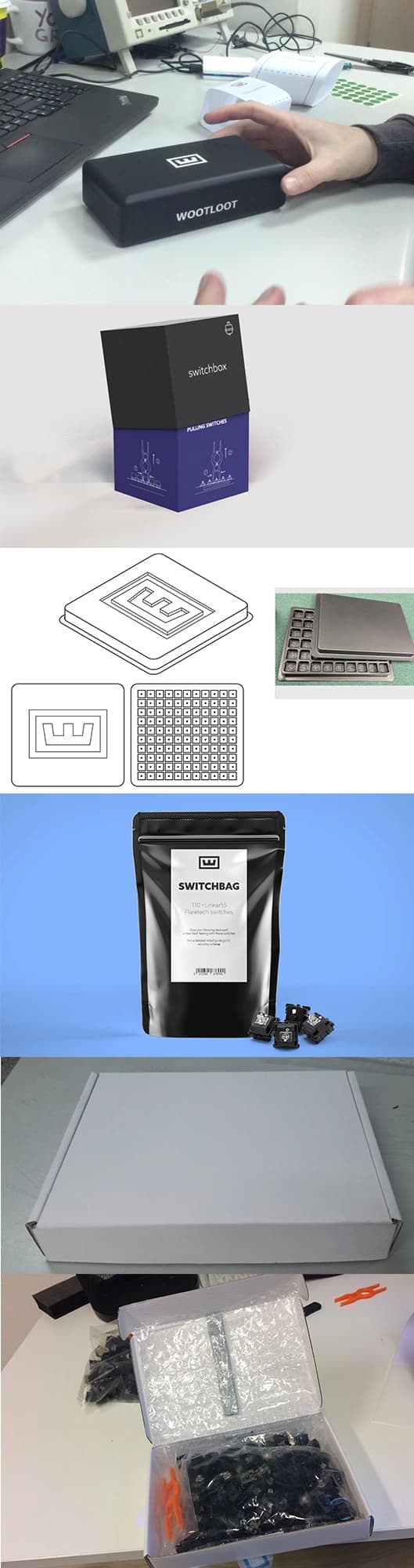 The PBT keycaps and switches are far easier to produce than the Wooting two but we greatly struggled with the packaging. It was a war between brand value and effectiveness. I mean, here’s a couple of packaging iterations that we had for the switch box.