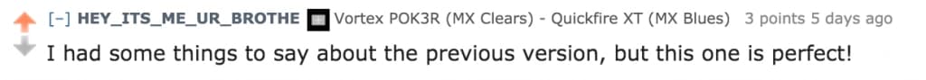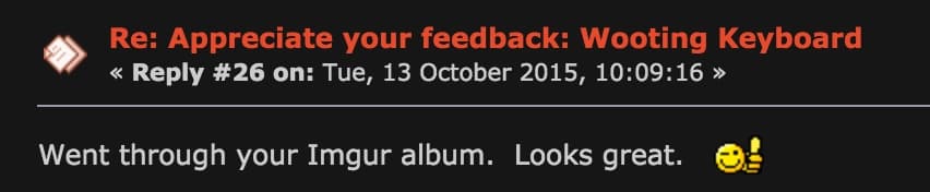 Thankfully the mechanical keyboard community is extremely friendly and not afraid to give honest opinions; we survived it with not only our dignity but also slight praise for our work. Check out some of the positive comments: