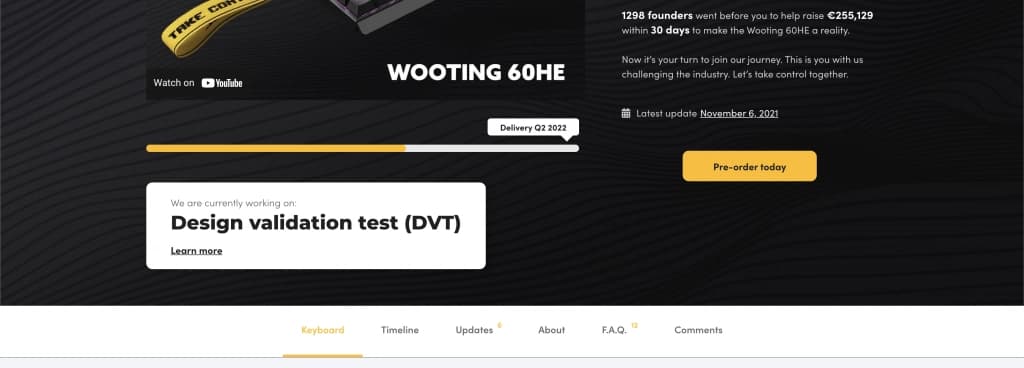 We had sold out the Wooting two LE in May 2020 and for the sake of our business, we really had to launch the Wooting two HE. But we made an internal decision to withhold launch until we felt confident that we could deliver on the Wooting two LE. That didn't happen until 5 months later when we launched the Wooting two HE pre-orders.