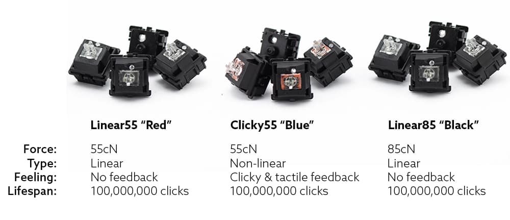 - Red, blue or black flaretech switches