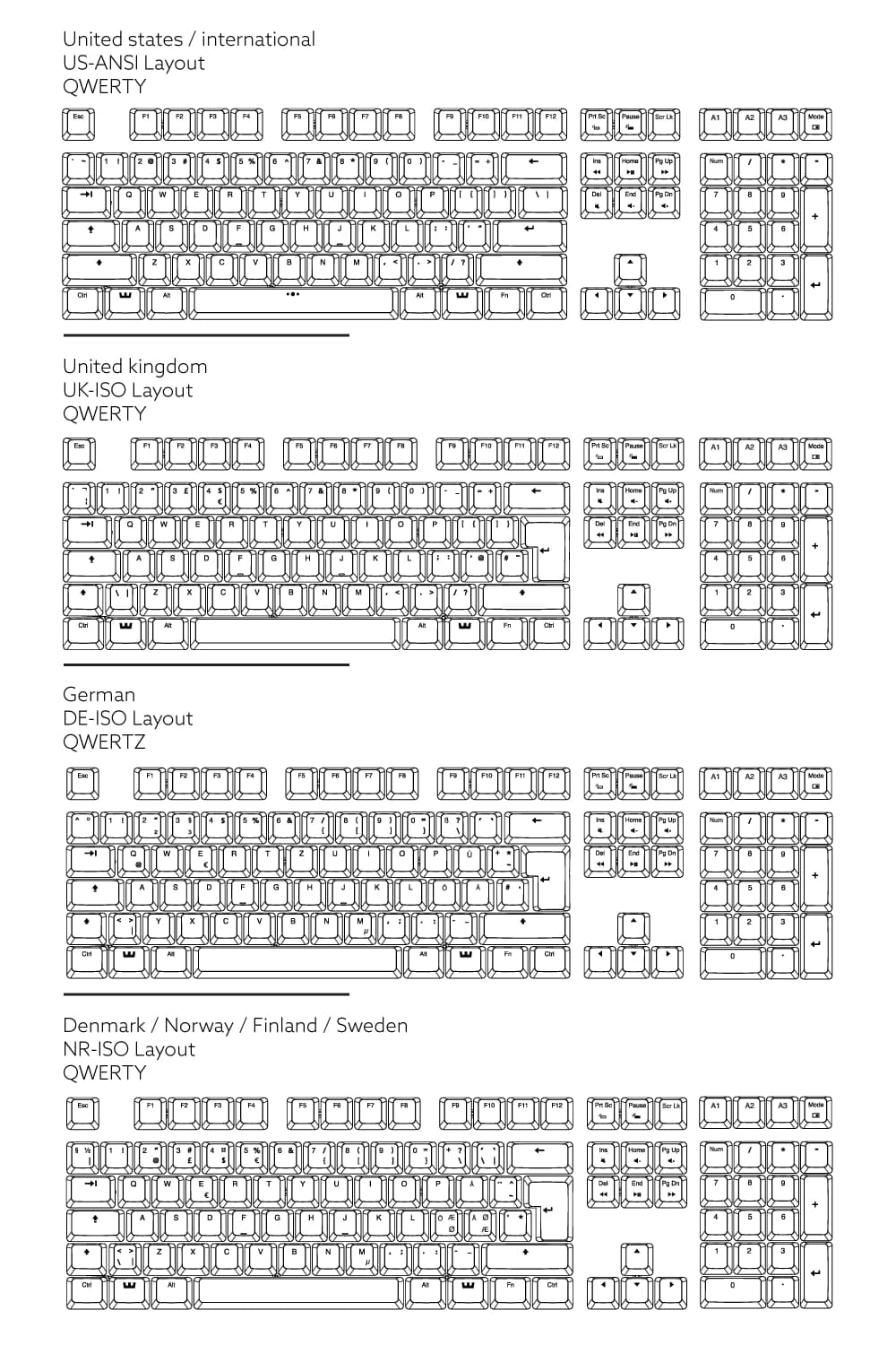 Avaliable layouts: