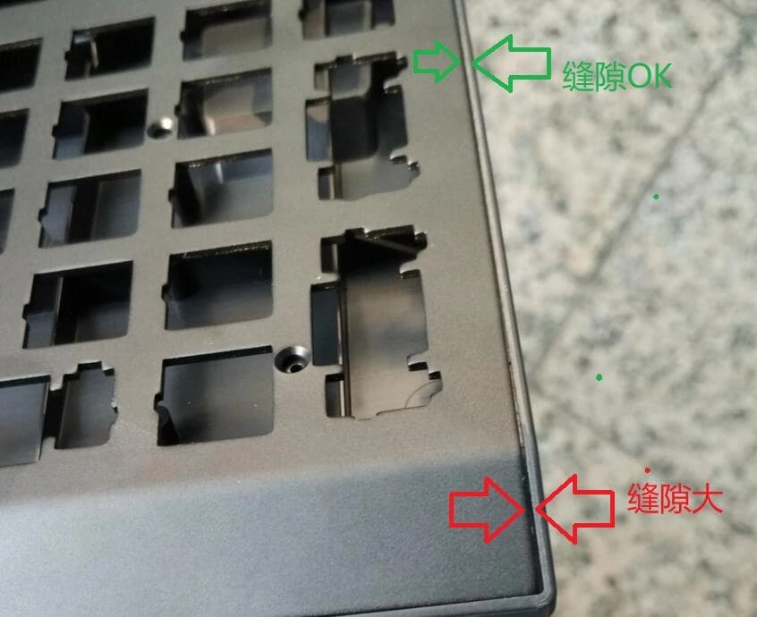 We had received the first samples of the Wooting two plastic bottom case and found out that there’s some plastic shrinkage causing issues with the top-plate fit. There's a small gap in between.
