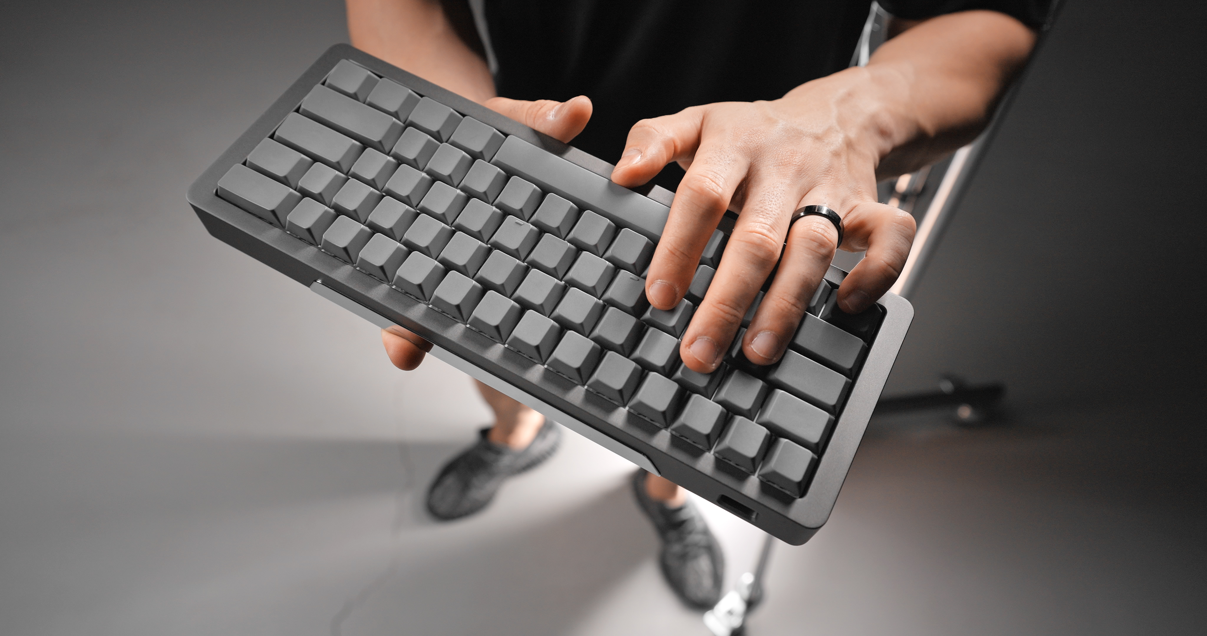 "When I wanted an upgrade for my 60HE, there was nothing on the market that felt right - so I created it with Wooting. This collaboration is my perfect keyboard; minimal branding, neutral aesthetic, with a focus on premium materials, machining, and user experience. The case is thick, heavy, and anodized to an amazing sparkle and feel. The colour is a 1-on-1 match with my FX3 cinema camera, framing the 60HE like nothing else. Completely blank, primer-coloured keycaps were added, and the polished case mirror became the final statement - hidden when the keyboard is in use, but never forgotten."